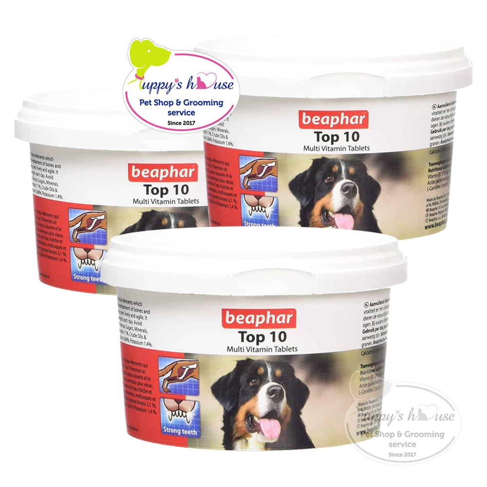 Beaphar Top 10 là thức phẩm bổ sung dinh dưỡng cho chó, chứa các vitamin cần thiết, khoáng chất và các nguyên tố vi lượng, giúp tăng cường sinh lực và tăng cường tình trạng thể chất, khuyến khích sự phát triển tự nhiên của xương và răng, đảm bảo lông bóng và đôi mắt sáng cho chó.