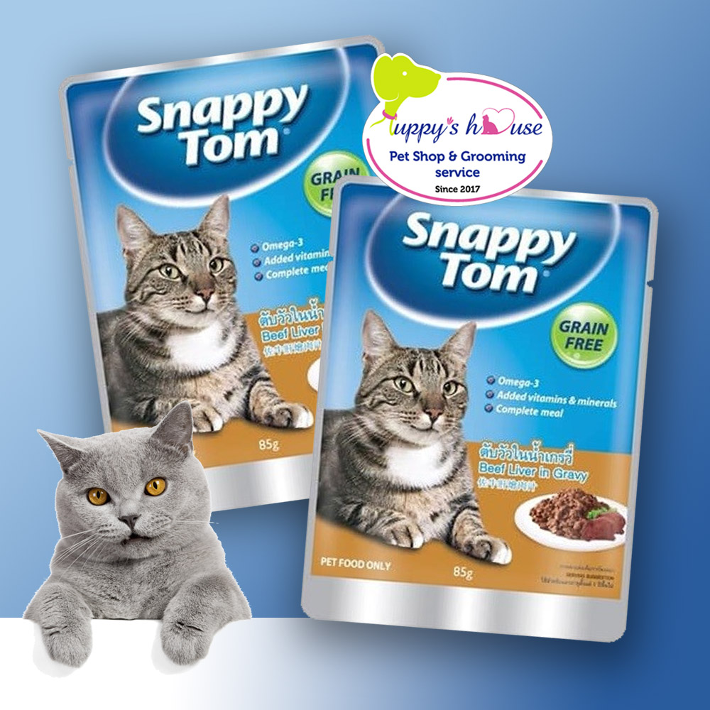 Pate Snappy Tom vị gan bò là sản phẩm thức ăn hỗn hợp hoàn chỉnh, dạng mịn xốp, không chứa ngũ cốc, không chứa gluten, cung cấp Omega-3 và dưỡng chất thiết yếu cho mèo.